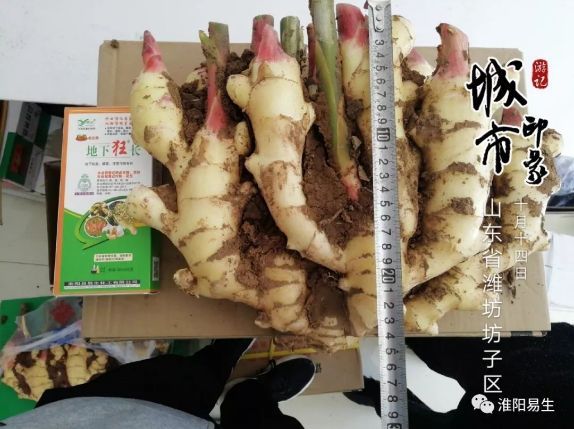 噴施地下狂長的大姜姜面平整,整齊度非常高,姜根粗長,大姜顏色金黃光亮,姜指頭粗大。我們市場(chǎng)人員現(xiàn)場(chǎng)測(cè)量,大姜長35cm,寬25cm。這么大的姜真是不多見!