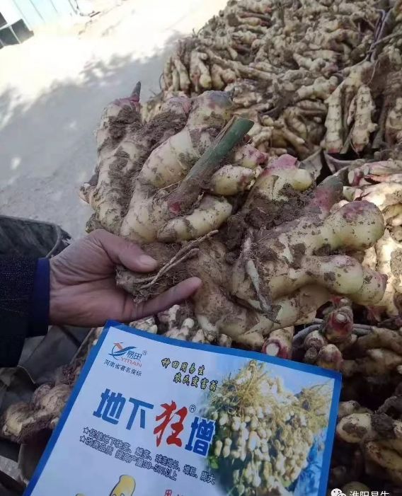 2019年10月14日,我們易生科技“地下狂”系列售后服務(wù)組來到我們正收獲大姜的種植戶家中,大姐家噴施了地下狂增5遍,噴施過地下狂增的大姜顏色金黃、姜指頭粗胖、塊頭大、姜絲多、密度大、耐儲(chǔ)存。從大姐臉上的笑容來看,對(duì)于今年的收成是真滿意!
